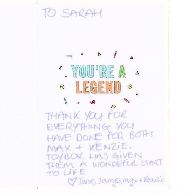 Again, thank you so so much for everything Sarah. I will absolutely recommend Toybox to anyone and I wish you all the best of luck and happiness to you and your team for the future.